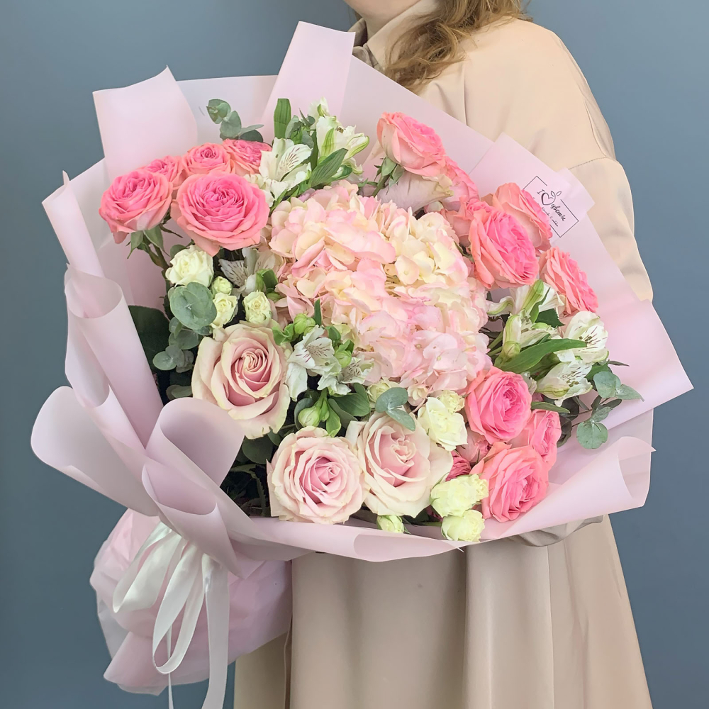Розам и гортензии нужно много воды - ваза должна быть наполнена минимум наполовину длины стеблей. Каждый день обновляйте срез и наливайте свежую холодную воду, чтобы букет радовал как можно дольше. Закажите этот нежный букет с доставкой, чтобы сделать красивый жест вовремя и без суеты.